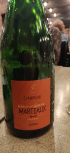 Första glaset ut var Marteaux Brut Réserve. Jag tyckte att den var underbart god med en rund, nästan gräddig smak. Påtaglig elegans, kanske inte så spännande och nästan inga eftertoner.