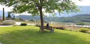 Pravis vingård ligger betagande vackert i en dalgång mellan de branta, höga bergväggarna. Det är som en scen ur Sound of Music men uppskruvat gånger 1000. Och för att fullborda bilden satt det en nunna på en bänk i trädgården … jo, på riktigt!